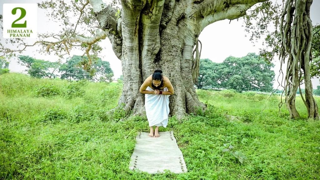After completing your practice of Himalaya Pranam, stand in Samasthiti for a long duration to balance your energies. Himalaya Pranam is also the foundation for Surya Namaskar and asana practice. This Pranam will help you to build your stamina, strength and flexibility. Perform this 21 times before you start your Sun salutation. Go slow in each posture with awareness on your breath. Be strong while practicing Himalaya Pranam. You will experience a very powerful protective layer, and you should make sincere efforts to stay with those energies.