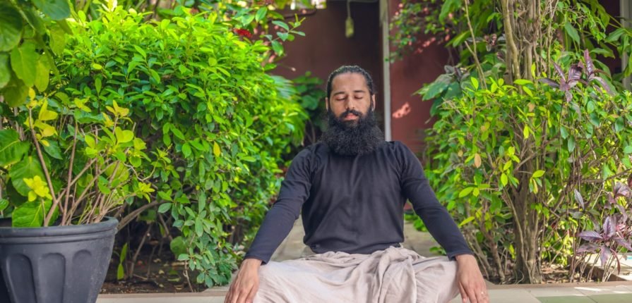 • Begin with Samsthithi. Stretch your arms outward begin to bend your knees